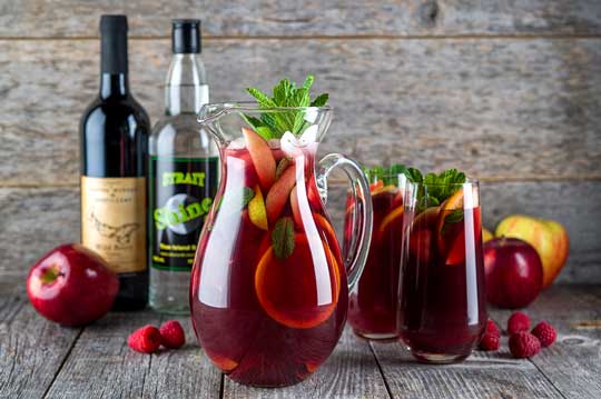- Mix Myriad View Distillery Strait Shine® infused fruit with remaining ingredients in a serving pitcher.